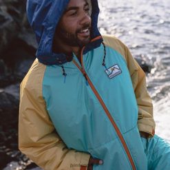 Passenger Clothing J0V68D19 Roaming Recycled Sherpa Lined Changing Robe Blue Turquoise/Ochre Yellow Men Blue