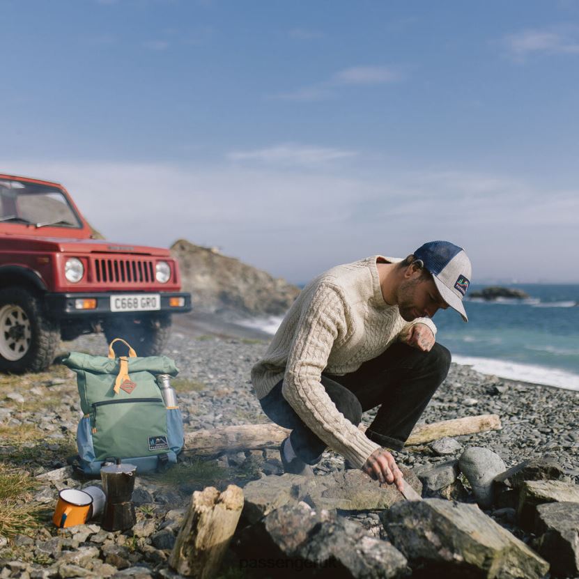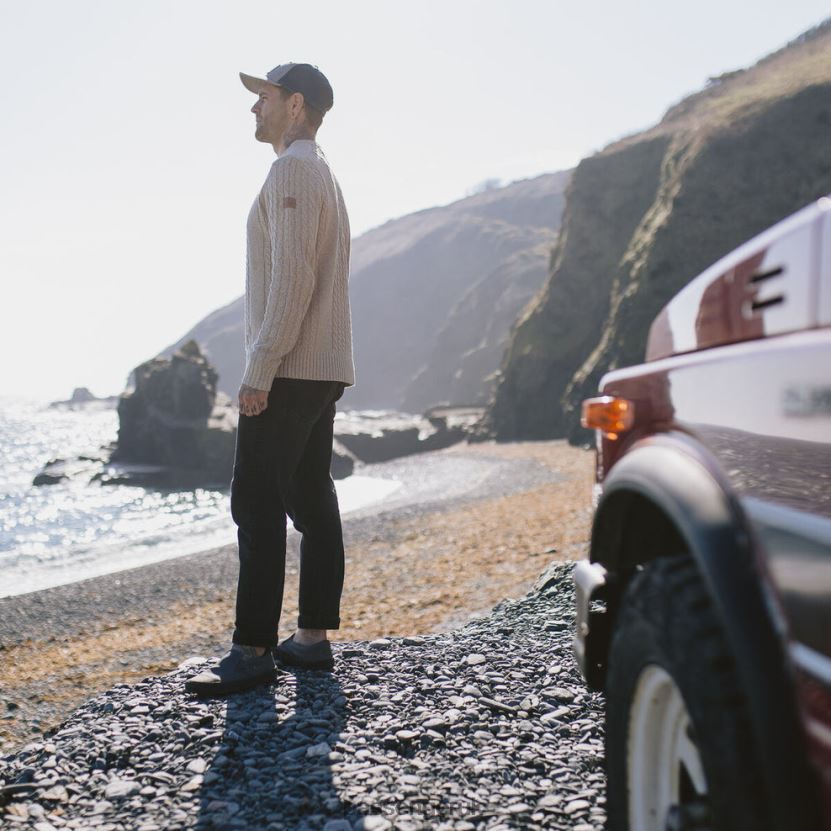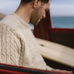 Our Drifter knit comes in a mid weight cable pattern with shoulder panels.