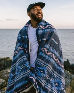 Passenger Accessories J0V68D505 Nomadic Recycled Sherpa Blanket Deep Navy Vintage Geo Men Navy