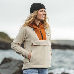 Passenger WoClothing J0V68D684 Alexander Hooded 1/2 Zip Recycled Polar Fleece Oatmeal Women Oatmeal