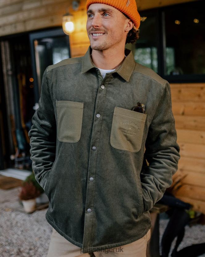 - Cotton corduroy long sleeve overshirt with a sherpa lining.