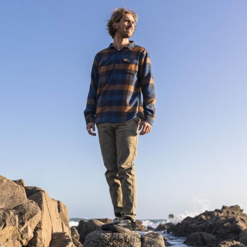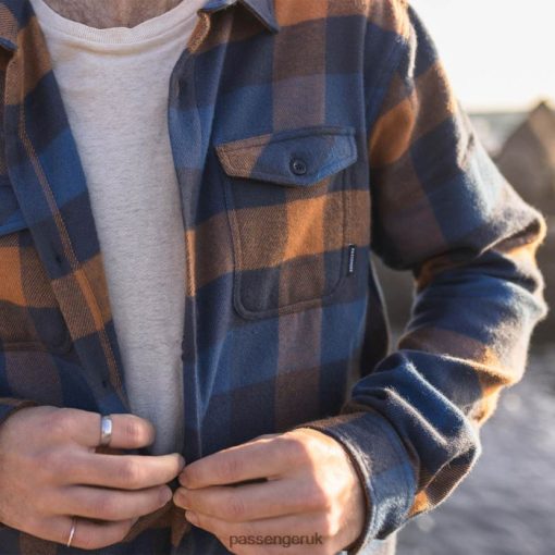 Passenger Clothing J0V68D256 Stove Brushed Cotton Overshirt Navy/Blue/Rubber Men Blue