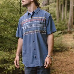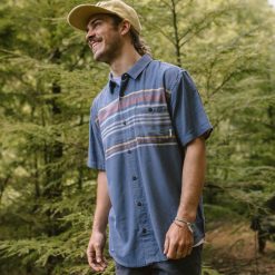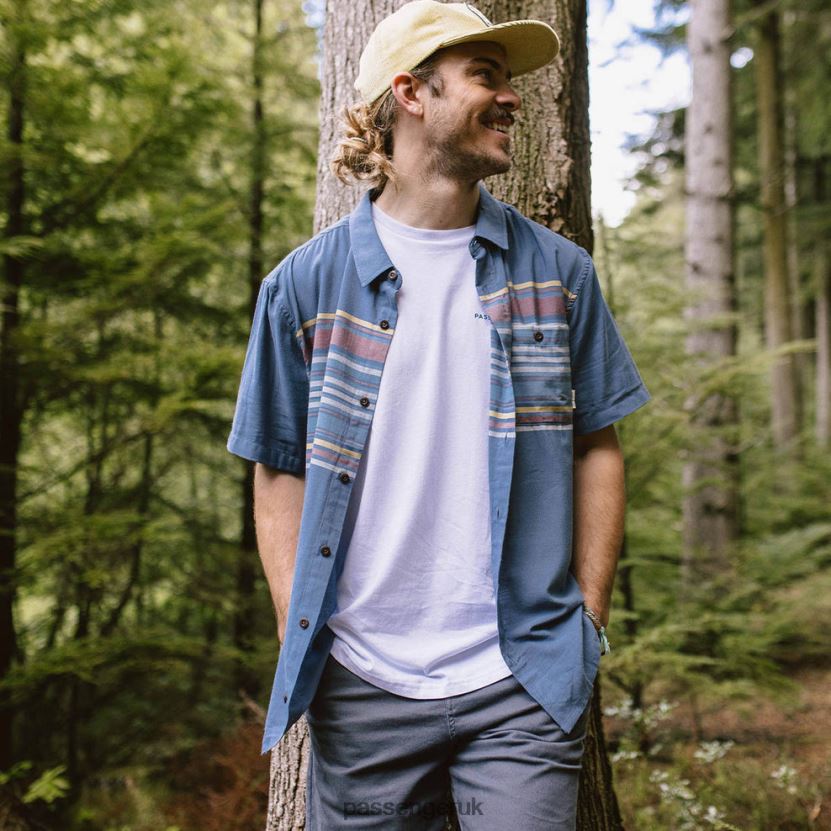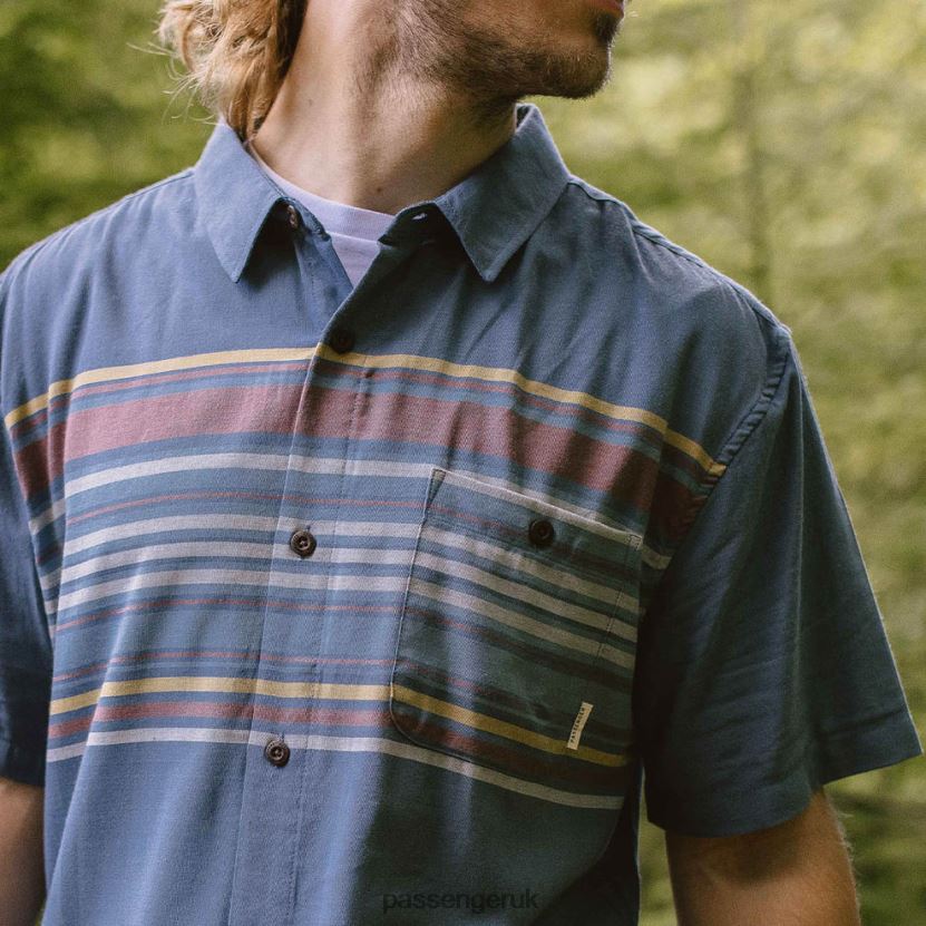 The Ebb is a classic summer shirt made in rganic Cotton, with pop of striped colour and detailed finish that all Passenger shirts come with.
