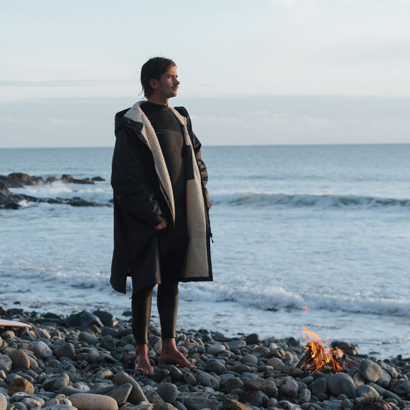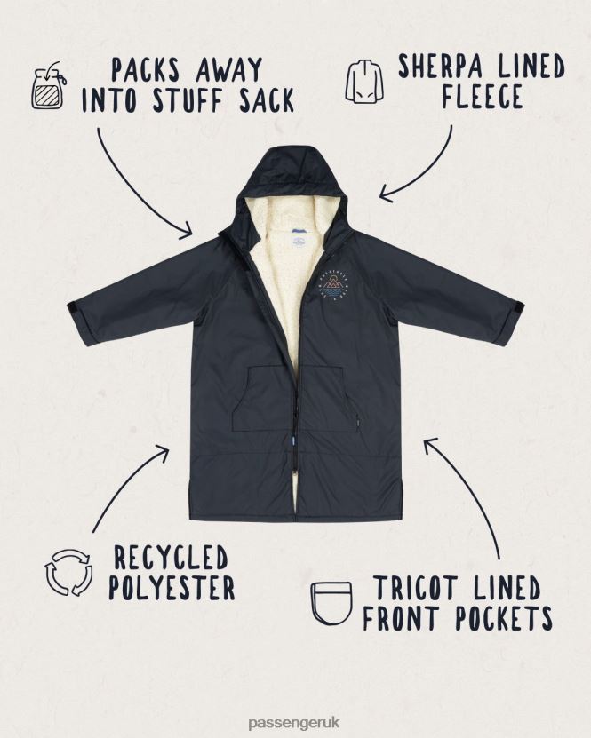Passenger Clothing J0V68D3 Escapism Recycled Sherpa Lined Changing Robe Black Men Black