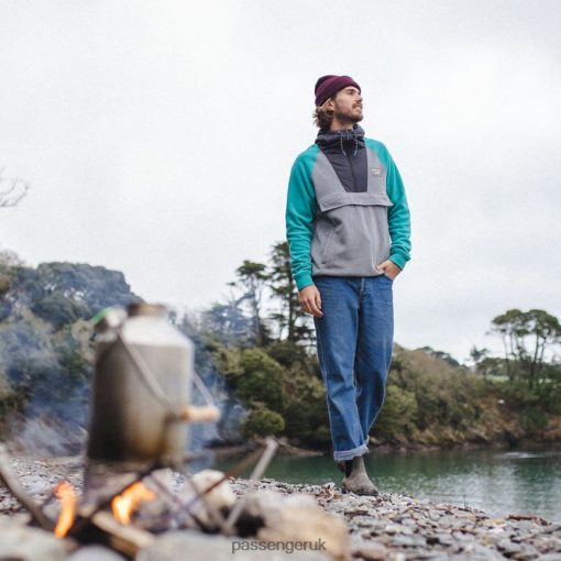 Passenger Clothing J0V68D71 Woodland Hooded 1/2 Zip Recycled Polar Fleece Viridian Green Men Green