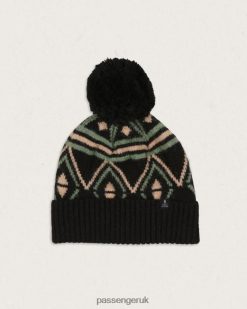 - Bobble hat with a turned up rib hem and jacquard pattern.