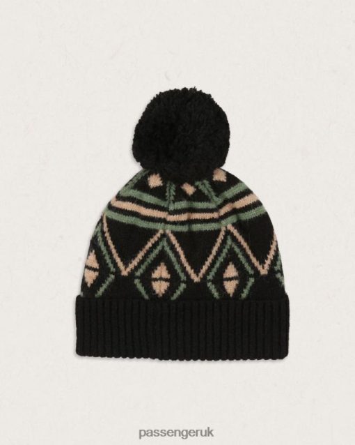 - Bobble hat with a turned up rib hem and jacquard pattern.