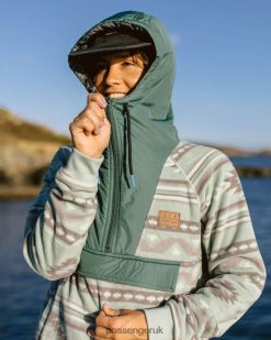 Passenger WoClothing J0V68D665 Alexander Hooded 1/2 Zip Recycled Polar Fleece Pistachio Pattern/Deep Ocean Women Pistachio