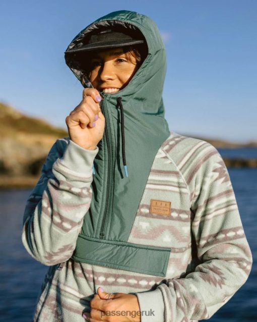 Passenger WoClothing J0V68D665 Alexander Hooded 1/2 Zip Recycled Polar Fleece Pistachio Pattern/Deep Ocean Women Pistachio