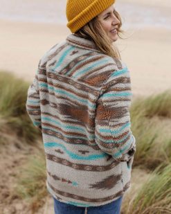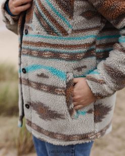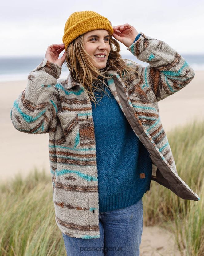 Passenger WoClothing J0V68D675 Olympus Recycled Deep-Pile Sherpa Fleece Shirt Warm Ivory Geo Pattern Women Ivory