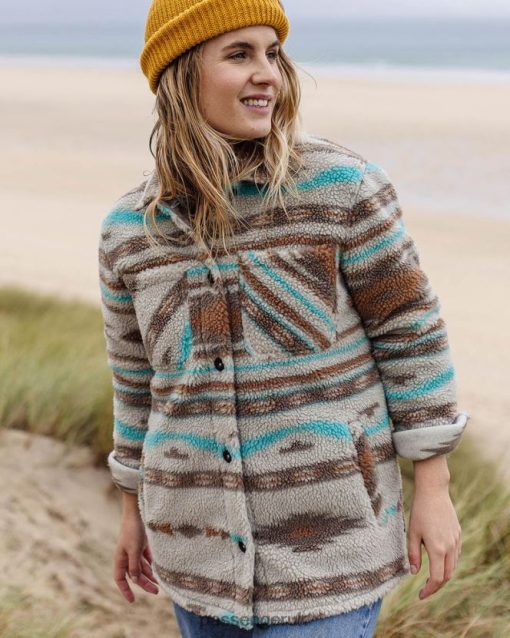 Passenger WoClothing J0V68D675 Olympus Recycled Deep-Pile Sherpa Fleece Shirt Warm Ivory Geo Pattern Women Ivory