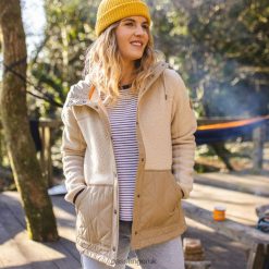 - Cosy, easy-wearing, two-panel recycled polyester sherpa fleece with a REPREVE ripstop quilted panel.