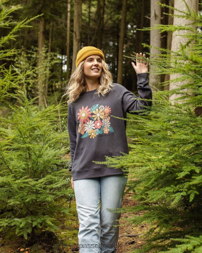 Passenger WoClothing J0V68D719 Floral Bloom Recycled Cotton Oversized Sweatshirt Charcoal Women Charcoal