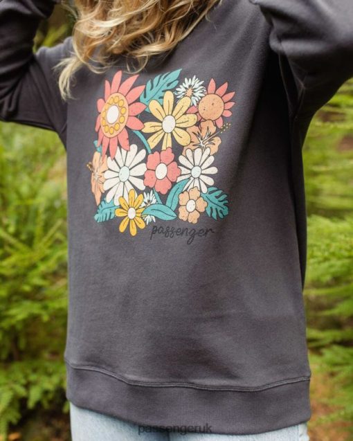 Passenger WoClothing J0V68D719 Floral Bloom Recycled Cotton Oversized Sweatshirt Charcoal Women Charcoal
