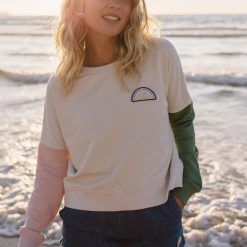 Oversized and made in super soft Recycled and Organic Cotton it’s perfect whether you’re heading for the hills or just being still. A easy wearing mid layer for Spring.