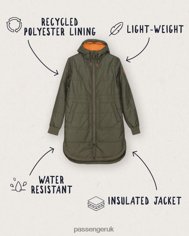 Passenger WoClothing J0V68D763 Flora Long Recycled Insulated Jacket Dusty Olive Women Olive