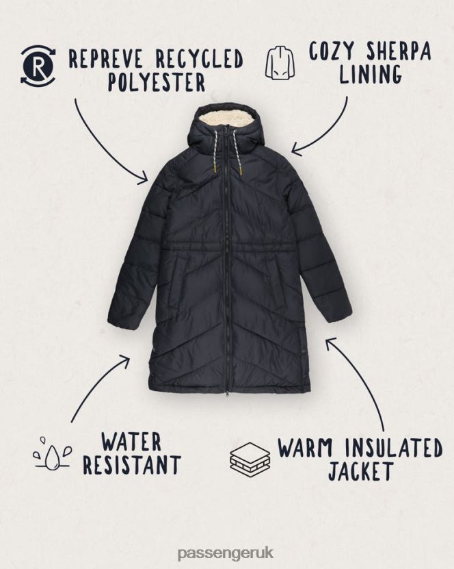 100% Recycled REPREVE polyester ripstop (50D) with a PFC-free water repellent coating (DWR), 375g recycled polyester imitation down (vegan friendly) insulation. Recycled sherpa upper body lining, nylon lower body lining.REPREVE fabric is made from 14 recycled, single-use plastic bottles and finished with a PFC-Free water repellent coating. Recycled polyester reduces our dependence on petroleum, cuts out the water and air pollution produced when creating virgin polyester, alongside preventing unnecessary landfill waste