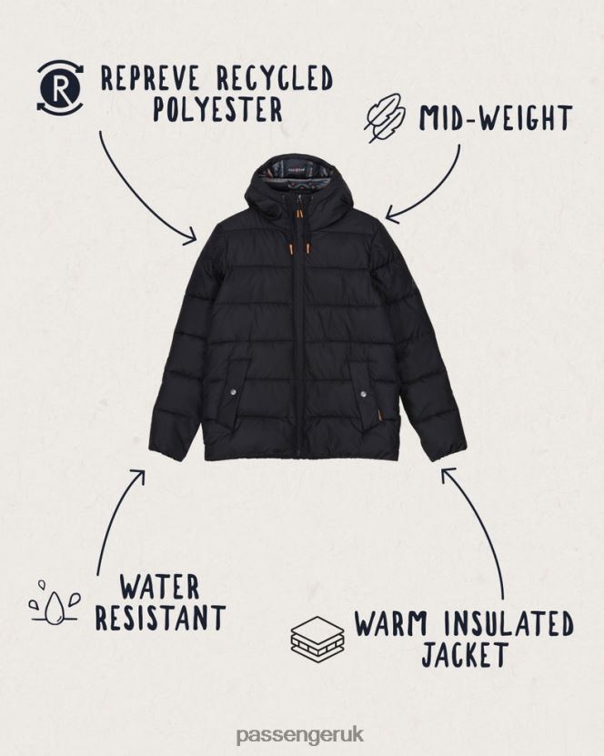 100% Recycled REPREVE Polyester ripstop (50D) with a PFC-free water repellent coating (DWR), 330g Recycled Polyester imitation down (vegan friendly) insulation. 100% Nylon lining.REPREVE fabric is made from recycled, single-use plastic bottles and finished with a PFC-Free water repellent coating. Recycled polyester reduces our dependence on petroleum, cuts out the water and air pollution produced when creating virgin polyester, alongside preventing unnecessary landfill waste