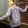- Mid-weight knit in a recycled Polyester and Wool blend. Block Striped pattern through bottom half of body and sleeves.