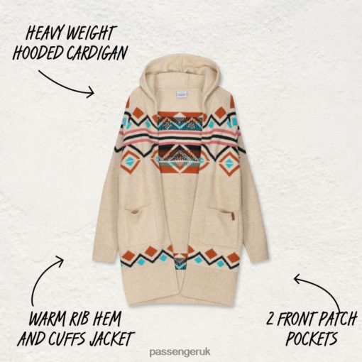 - Heavy-weight hooded cardigan with a jacquard knit pattern.